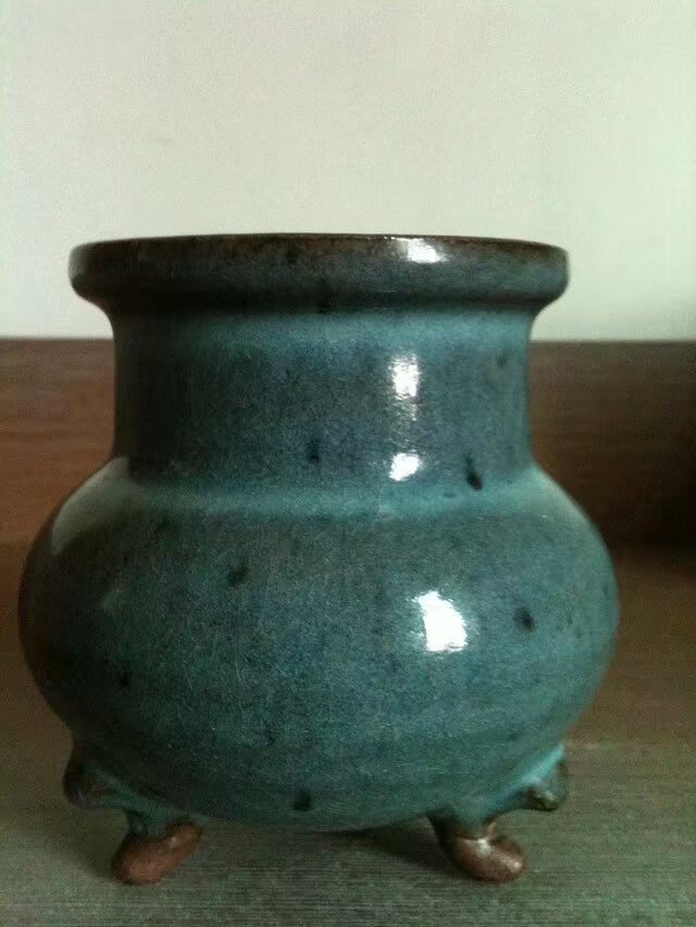 1. 契合耿老的目鉴核心:耿宝昌先生鉴定宋元钧窑,极看重“气韵”与“工艺原味”。这件炉子的天青釉乳浊感柔和、釉面开片自然内敛,三乳足的捏制手法古拙大气,没有后世刻意仿造的拘谨感,完全符合宋元民钧“粗料细作、古意盎然”的核心特征,正是耿老最认可的宋元钧窑风貌。