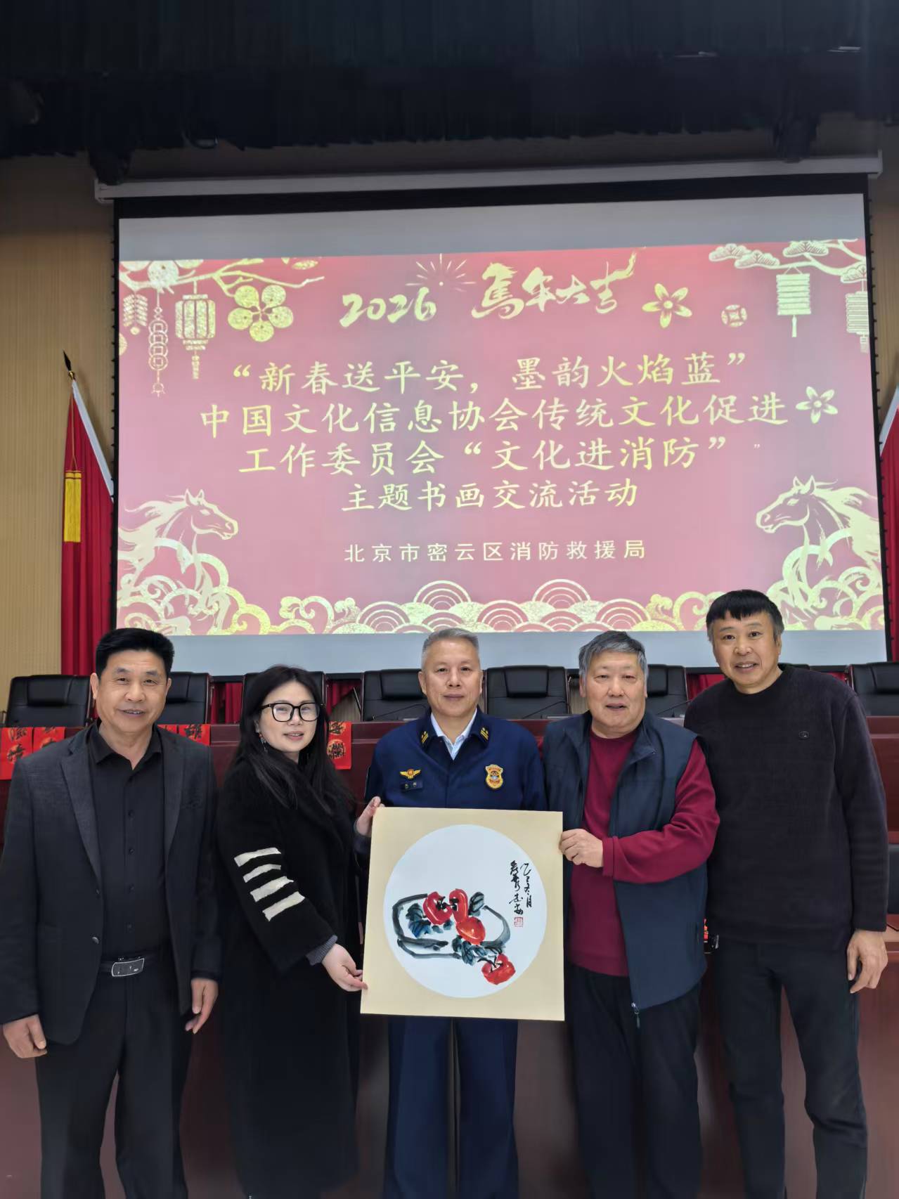 为深入弘扬中华优秀传统文化,在新春佳节来临之际,雅斋书画院名誉院长魏志安、院长龙丽蓉、执行院长郑元德,在活动组织者郑秀才的统筹协调下,与中华文化信息协会传统文化促进工作委员会一同,于北京市密云区消防救援局共同举办“新春送平安,墨韵火焰蓝”文化进消防主题书画交流活动。